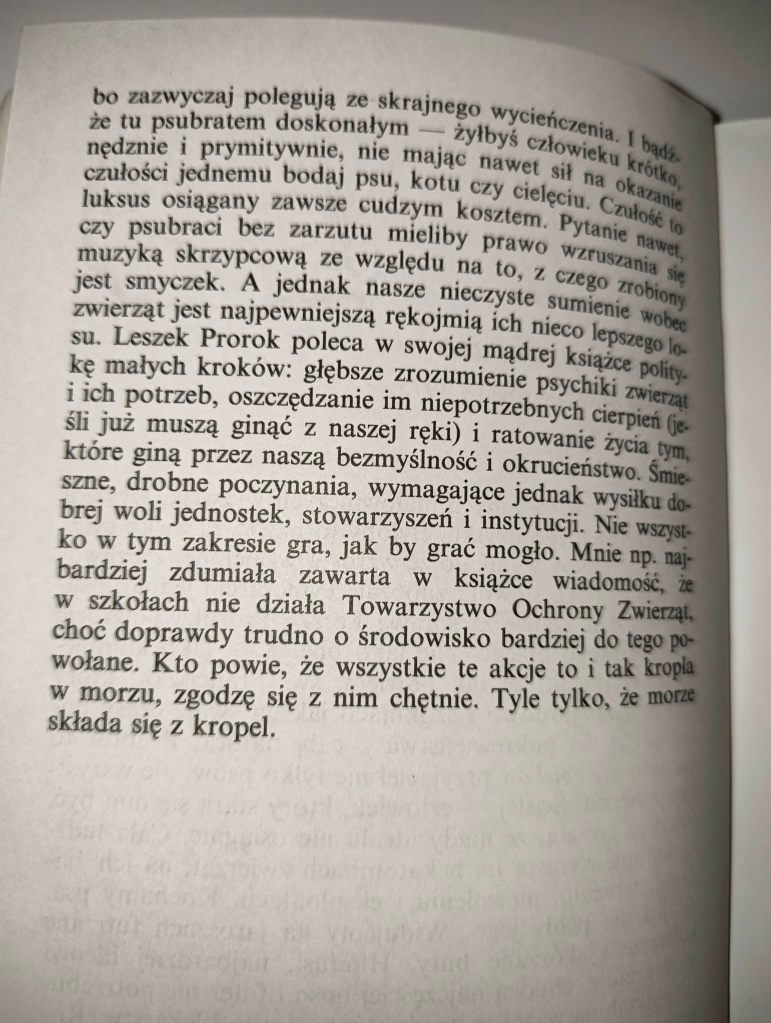 Nie ma już w Europie dużych dzikich zwierząt, które by żyły jeszcze poza zasięgiem naszej ludzkiej laski niełaski. Tylko drobnica wymyka się spod kontroli i miejscami bytuje na prawdziwej swobodzie. Dużym gatunkom może się tylko wydawać, że istnieją jak chcą, w rzeczywistości jednak poddane są zdalnie kierowanej hodowli. Gdybyśmy się uparli i energicznie do dzieła zabrali, moglibyśmy każdy większy gatunek unicestwić do ostatniej sztuki w ciągu dwóch, trzech lat, a przy żywym współudziale biurokracji to nawet w ciągu lat pięciu. Naturalnie nikt tego sobie nie życzy. Czytając książkę Dzięgielewskiego, w której jest absolutnie wszystko, co dotyczy jelenia w przeszłości, teraźniejszości i przyszłości, doszłam do wniosku, że piękne to zwierzę będzie istniało w Europie aż do ostatniego myśliwego. Myśliwi zginąć mu nie pozwolą, bo kto lubi polować, musi mieć na co. Tak tedy myśliwy przemyka przez karty tej książki w podwójnej roli: niszczycielsko-opiekuńczej, jako anioł zagłady i anioł stróż równocześnie. W prawej ręce dzierży strzelbę, a lewą przesyła jeleniowi całusa. Bodaj najczęściej używanym słowem w książce, oprócz słów „jeleń” i „poroże”, jest “odstrzał”. Odstrzał poprawia rasę, bo eliminuje osobniki niepełnowartościowe. Odstrzał czuwa nad pożądaną proporcją w ilości samców i samic. Odstrzał reguluje rozmieszczenie zwierzyny, aby mogła dobrze prosperować nie niszcząc nadmiernie materii leśnej i polnej. Odstrzał poprawia nawet urodę jeleni, uniemożliwiając rozród takim egzemplarzom, którym rogi rosną nie tak, tylko tak. Jednym słowem odstrzał działa na różne sposoby dla dobra jeleni i tylko to jest przykre, że one o tym nie wiedzą.