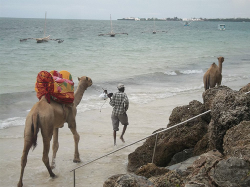 Ich blicke zu dem Kamel hoch, ich sehe das Brandmall des Besitzers auf der gutmütigen Schnauze und willige ein. Ich schaukele gemächlich auf dem Rücken des Kamels, der Jackie Brown heißt, und mein persischer Mann unterhält sich mit Ali. Ali erzählt, dass er aus Somalia stammt und ist wirklich froh, dass er dem Bürgerkrieg und dem Hunger mit seiner Frau und zwei Kinder entfliehen konnte. Er ist hier zwar nur ein einfacher Kameltreiber, aber muss nicht mehr um das Leben seiner Söhne zittern. Das Kamel gehört ihm nicht, noch nicht, aber er ist zuversichtlich, dass er Jackie Brown, wenn er genug Geld beisammen hat, dem Besitzer abkaufen kann. Ali zündet sich seine Feierabend-Zigarette, blickt zu mir hoch und lächelt breit. Ich schaue zum Wasser und sehe junge Kenianer, die fröhlich im Wasser oder am Strand spielen und möchte dieses Bild von Kenia behalten.