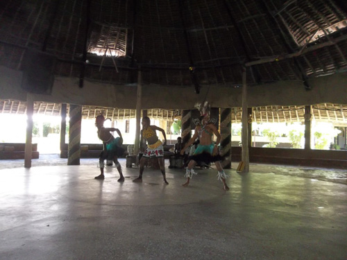 Auf dem Gelände befindet sich ein Restaurant, Mahmud führt uns dahin und bei den Getränken wird uns eine Tanz-Show angeboten, obwohl wir die einzigen Touristen sind. Etwa 10 junge Kenianer singen und tanzen nur für uns. Es ist schön zu sehen mit welcher Freude, sie ihre traditionellen Tänze vorführen.