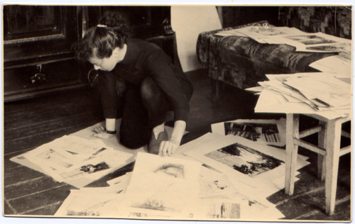 Dziś “Kobiety nad morzem”. Nie mam tej grafiki, chyba nikt z nas nie ma wszystkich grafik Mamy i, jak na razie, nie mam reprodukcji lepszej niż zdjęcie strony gazetowej, oczywiście znalezionej w stercie starych papierów.