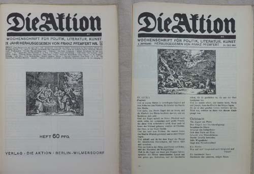 Dr. Lidia Głuchowska, unsere Fachfrau für Kunst überhaupt und für Kunst der Moderne und der Avantgarde insbesondere, stellt uns die Zeitschrift Die Aktion vor, eine von Franz Pfemfert von 1911 bis 1932 herausgegebene literarische und politische Zeitschrift, die dem Expressionismus zum Durchbruch verhalf und für eine undogmatische linke Politik stand. Die Aktion bereitete immer spezielle Weihnachtsseiten für jeweilige Dezemberausgabe vor. Mit viel moderner Graphik und Dichtung.