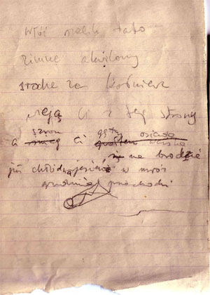 A pod spodem cytat, z kogoś, z czegoś – “a teraz wchodzimy w nową epokę życia”.  Cytatu nie rozumiem, bo wprawdzie sens tego zdania jest oczywisty, nie wiem natomiast, co skłoniło Mamę do zanotowania tej wypowiedzi i to w cudzysłowie. Ale za to poprzednie notatki to dla szperacza prawdziwe Eldorado, a to dlatego, że Mama sobie te pomysły zapisała, ale zrealizowała je na blogu “Kura” i “Qra” jej kuzynka czyli Ciotuchna i to tak dokładnie, jakby się w tych wpisach kierowała wytycznymi Mamy. Brakuje tylko palącego się stołka i babek klozetowych. A ja, od siebie, dodałabym jeszcze, że brakuje nie tyle historii czy nawet Historii, ile – historyjek, na przykład o stróżu i słoikach (“konfitury zjadłem, a jakże, dobre były, a słoiki oddaję, bo nie moje”), o sąsiadach (“nie śpią jeszcze, bydło rogate”) czy anegdotki o planowanej wizycie stryjka Felka.