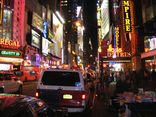 Wracając do nocnego Nowego Jorku – generalnie balować można w lokalach do godziny 4, ale wiele klubów zamyka dopiero rano. Od 04.00 do 08.00, a w niedzielę od północy, obowiązuje jednak zakaz sprzedaży alkoholu. Nie podadzą ci go również, jeżeli masz poniżej 21 lat. Amatorom grzeczniej spędzonych wieczorów, czy też bardziej intelektualnych, wychodzi naprzeciw Theater District wokół Brodwayu, 42 ulicy i Times Square, Lincoln Center for the Performing Arts i Upper West Side. Oferta jest bogata, od światowej sławy inscenizacji teatralnych, operowych i musicali, poprzez ambitną sztukę kameralną i sceniczne debiuty, na Salonie Madame Tussaud i popisach cyrkowców w Big Apple Circus skończywszy. Na scenach, zarówno repertuar klasyczny, jak i awangardowy; bilety wstępu do Metropolitan Opera są oczywiście droższe od tych do gabinetu figur woskowych, ale przy odrobinie szczęścia, na parę godzin przed spektaklem, można je kupić także znacznie taniej. Znajomym udało się w ten sposób obejrzeć „Normę” Vincenzo Belliniego, ze znakomitą sopranistką, Sondrą Radvanovsky w tytułowej roli i cała przyjemność kosztowała ich 20$ od osoby.