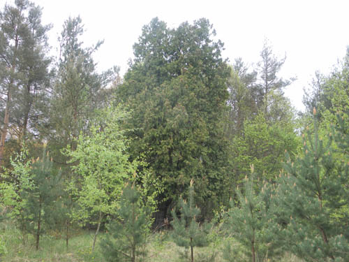 Między Żarami a Żaganiem też tylko lasy, lasy, lasy… Głównie bór żywicą pachnący. Ale nie pozwól, by ta woń pogrążyła twą czujność w drzemce. Nagle, nie wiadomo kiedy, wśród swojskich sosen pojawia się… no owszem, iglak, ale trochę nie z tej bajki. Ba, nie z tego kontynentu. Cyprysiki na niżu środkowoeuropejskim nie rosną. Chyba, że ktoś je posadzi. Na przykład w przydomowym ogródku. Bo tu kiedyś był przydomowy ogródek! Dom zniknął, ogródka nie ma, ale cyprysik wybujał nad podziw, w potężne drzewo.