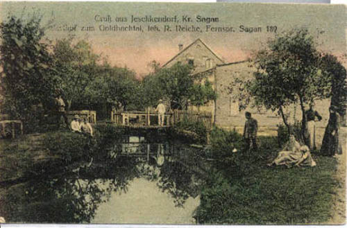 Piękna to musiała być wioska: wszędzie wokół lasy i niewielka, choć urocza rzeczka Sochre (Żarka, częściej zwana Złotą Strugą), meandrująca w głębokich jarach. Rzekł Klasyk, iż byt określa świadomość, więc aktywność mieszkańców została zdeterminowana lokalizacją. Wydaje się, iż stosunkowo wcześnie Jeschkendorf stał się, bo stać się musiał, raczej wilegiaturą, niż wioską rolniczą. Pałacyk, jakieś wille, no i kilka młynów, poruszanych nurtem Złotej Strugi.