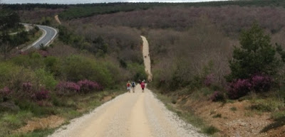 Źle spałam, ale wychodzę na czas i przez pierwsze półtorej godziny idę jak maszyna do chodzenia. W Villafranca w połowie drogi zakupy, bo w Belorado kierownik hostelu uprzedzał, że w Ortega nie ma nic, a potem jest niedziela i nigdzie nie ma nic. Pewnie nie warto się było tym przejmować, bo w Ortega rzeczywiście nie ma sklepu, ale jednak jest knajpa, mogłam więc nie dźwigać bułek pod górę. A zaraz za Villafranca zaczyna się góra i jest dość ciężka, co oznacza, że jest ciężko, ale można wytrzymać. Podejście jest jednak dość łagodne, a widoki i tzw. okoliczności przyrody cudowne. Przechodzimy przez pasmo wysokich kopulastych gór, porośniętych dębowymi lasami. U stóp dębów gęsty las paproci, a na obrzeżach drogi niekończące się wstęgi ciemnofioletowego wrzosu.