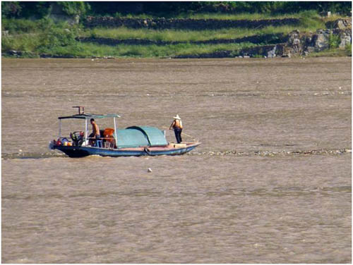Cztery kolejne dni spędzamy na statku płynącym po Jangcy – trzeciej co do wielkości rzece świata. Rzeka jest rzeczywiście olbrzymia – krajobrazy widziane z okna naszej kabiny byłyby jednymi z najpiękniejszych widoków jakie widziałam w życiu, gdyby nie sterty śmieci płynące wzdłuż rzeki. A wśród tych plastikowych butów, butelek, płyt, resztek mebli, jedzenia małe łódki – całe rodziny grzebią w śmieciach szukając rzeczy, które można byłoby sprzedać na skupie. I pierwsi pływający Chińczycy – młodzi chłopcy nieświadomi tego, jak czyste są rzeki w innych częściach świata. Pełną rekompensatą jest kiczowate wręcz, pełne gwiazd niebo, które oglądamy wieczorem popijając na pokładzie piwko i rozmawiając do północy o tym dziwnym kraju, który wszyscy w naszej grupie zwiedzają po raz pierwszy. Podczas jednej z proponowanych przez biuro wycieczek widzimy największą na świecie elektrownię wodną na Jangcy. Przy tworzeniu tego projektu, zwanego przez rząd „projektem tysiąclecia”, przesiedlono 1,5 miliona ludzi i zalano wiele wiosek.