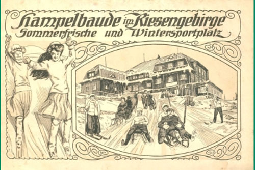 Dowcipnie skomentował tutaj swój pobyt artysta-malarz Ludwig Richter, autor powyższego sztychu, przedstawiającego Hampelbaude, który 14 sierpnia 1838 r. odnotował w dzienniku, co następuje: „Unzählige Reisende. Damen getragen. Schöne Mädchen. Eine ungeheure Milchsuppe überschwemmt die Stube, da der Boden des Topfes bricht.“ Przytoczyłem w oryginale, bo żaden przekład nie odda lepiej ekspresji na gorąco, w malarskim wizjerze, złapanego życia. Praski poeta Karl Herloßsohn napisał zaś: „Hier spielte eine blinde Harfnerin und tischten uns die jungen, hübschen Tochter der Wirtin ein Frühstück, bestehend aus Brot und Branntwein, ganz á la Riesengebirge, auf.“ Wtedy jednak miejsce to miało już innego właściciela.