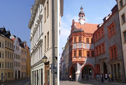 My zaś dalej w Tworzywie dłubiemy. Transakcja i transport. Bogactwo oraz pomyślność miast w całej Europie przez wiele wieków zależały od pracy i kunsztu rzemieślników, ale jeszcze bardziej od inicjatywy i przemyślności kupców. Tak to już jest, że zawsze najlepiej zarabia pośrednik. A jeśli przypomnimy raz jeszcze, że Zwjazk šěsćiměstow, czyli Związek Sześciu Miast dbał o to, żeby transakcje zawierano uczciwie, a transport towarów przebiegał bezpiecznie, łatwo zrozumieć, dlaczego Zhorjelc, gród tranzytu i pielgrzymów, zręcznych rzemieślników i bywałych w świecie kupców, właściwie skazany był na ekonomiczny sukces. Przy zgorzeleckiej Starówce nawet budziszyńska, choć imponująca, jawi się jako uboższa i mniej zaradna siostra. Co prawda przez kilka powojennych dziesięcioleci haniebnie ją zaniedbano, ale w ostatnich latach przeszła prawdziwą transformację: pieczołowicie odnowiona znów rozkwitła. I gdy tak się po niej włóczy Viator, czuje, jakby w jakimś transie trwał permanentnym! Popatrz zresztą sam, Czytelniku.
