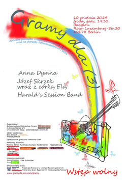 W polskich kręgach polonijnych od 12 lat odbywają się również koncerty charytatywne, do najbardziej popularnych zalicza się Wielka Orkiestra Świątecznej Pomocy. Od trzech lat funkcjonuje też „Gramy dla…”, berliński projekt organizowany przez grupę ludzi o wielkim sercu. Impreza stopniowo zyskuje swoich zwolenników, w tym roku nie powinno być gorzej – myśleli organizatorzy. Spodziewali się większego niż w poprzednich latach zainteresowania. Specjalnie na tę okazję przyjechał wybitny muzyk Józef Skrzek, atrakcyjny repertuar piosenek przygotował berliński zespół muzyczny Harald’s Session Band. Kogo tak naprawdę zainteresował koncert charytatywny „Gramy dla…”? Nielicznych. Niewiele osób przyszło, więc i w skarbonce ledwo dno zakryte. Nie wiem, co powiedzieć? Indywidualnie potrafimy pomagać, natomiast z publicznymi zbiórkami różnie to bywa.