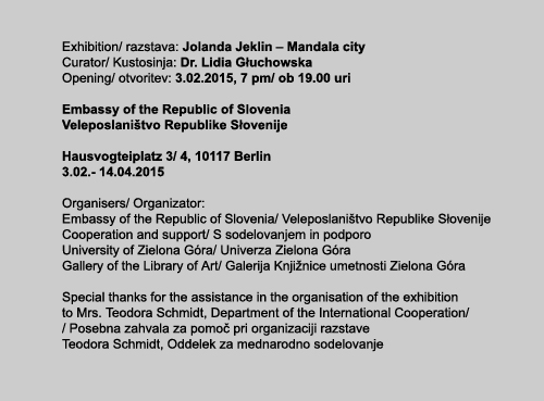 Jolanda Jeklin, künstlerisch mit Ihrem Heimaltland Slowenien und seit 15 Jahren mit Polen verbunden, erläutert zur Genese ihrer Arbeiten, die derzeit in der Botschaft Sloweniens in Berlin präsentiert werden, Folgendes.