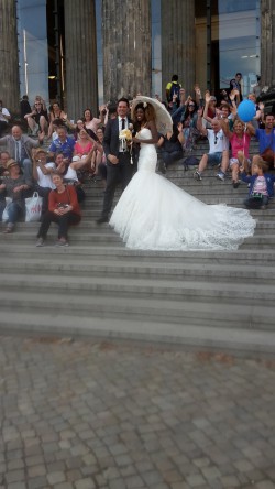 Vor dem Altenmuseum eine Fotosession mit einem Mix-Brautpaar. Sehr schön. Komisch, als ich vor ein paar Wochen meinen Tag in Berlin beschrieb, berichtete ich von einem Polsterabend. Offensichtlich heiraten jetzt die Menschen in Berlin wieder.