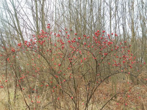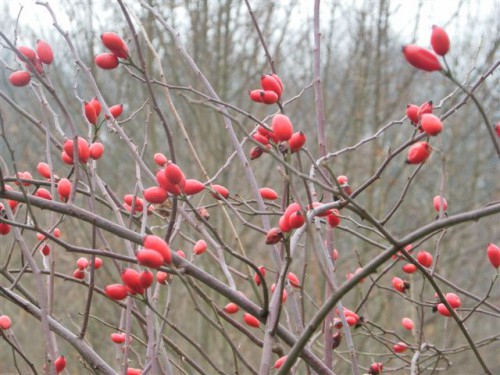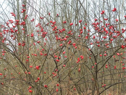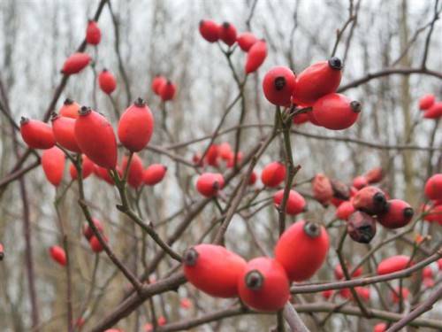 Płomienna, soczysta czerwień. Żadnego wysiłku nie wymaga jej odkrycie, sama odcina się wyraziście od pastelowego tła. Refleks piękna. Otucha Wędrowca. Jesienny krzak dzikiej róży, obsypany owocami. Już teraz wygląda zjawiskowo, a co będzie, gdy spadnie śnieg?! Mija go szczęśliwiec Viator każdego dnia, gdy pośród szarych porannych mgieł brnie do pracy.
