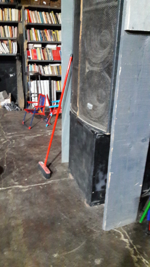 In dem großen Theatersaal, wo auch Bibliothek untergebracht wurde, wollte ich nicht stöbern, aber in einem engen dunklen Flur gab es ein Korb voller Sachen zu mitnehmen und nebenan auch ein Brett mit abgelegenen Bücher.