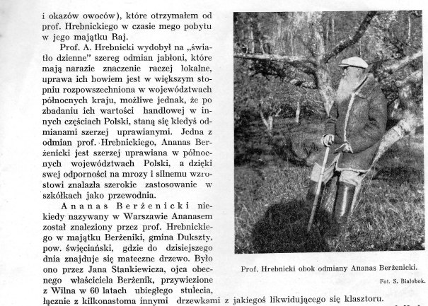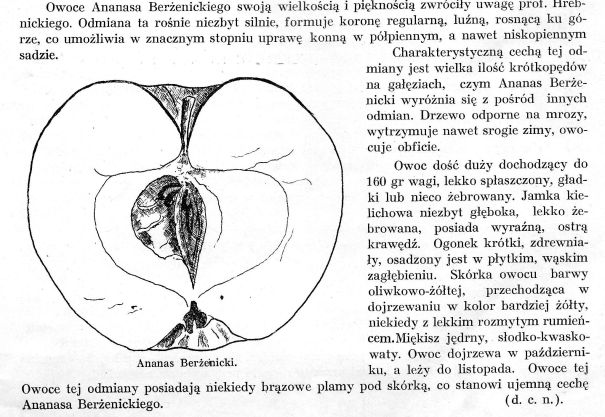 Opisana przez Hrebnickiego odmiana jabłoni “Ananas Berżenicki”, nazywana często “Ananasem”, jest dobrze znana w Polsce i uważana za jedną z najwartościowszych jabłoni z tzw “starych odmian”.