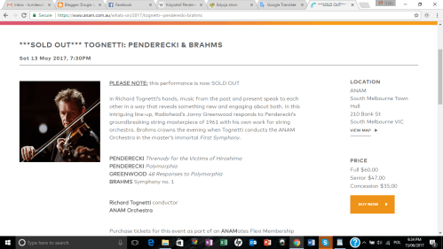 Ja nie przegapiłem takiej okazji. Tren pamięci ofiar Hiroszimy brzmiał jak 55 lat temu, za to Polymorphia dużo lepiej. Wyraźnie słyszałem w niej nawiązania do poprzedniego utworu.