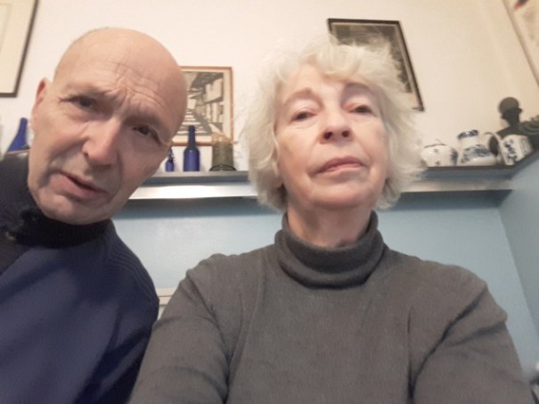Peter und Ewa (wir dutzen uns schon) und dazwischen, hinter an der Wand das Bild Veliko Trnovo.