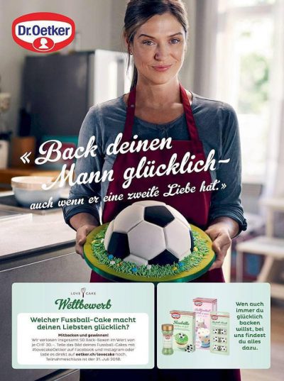 Seid Ihr über die 1950iger Jahre noch nicht hinweg gekommen?! Dieses rückschrittliche Frauenbild im Jahre 2018 – wollt Ihr AfD, FPÖ, konservative Christen und sonstige konservative Kräfte nun zum Backen von Fußballtorten bringen, damit sie sonst kein Unwesen mehr treiben? Dieser “Schuß” ist eindeutig ein Eigentor, weil ich werde in Zukunft angesichts dieser sexistischen Werbung sehr darauf bedacht sein, keine Produkte aus dem Hause Dr. Oetker mehr zu kaufen!