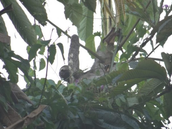 Spędzamy kilka godzin na obserwowaniu papug, po powrocie do ośrodka jemy obiad, pakujemy rzeczy i wyruszamy w dalszą drogę po rzece. Po kilku godzinach w docieramy do Manu Learning Center, gdzie spędzimy noc. W ośrodku mieszkają wyłącznie młodzi ludzie. Patrząc na nich, odnoszę wrażenie, że jesteśmy tutaj jedynymi płacącymi gośćmi. Moje przypuszczenia niebawem się potwierdzają. Siadamy na ganku przed domkiem, gdy odwiedza nas Sharon, jedna z osób odpowiedzialnych za projekt fundacji „Crees” na terenie ośrodka. W ramach tego projektu młodzi ludzie z całego świata, głównie ochotnicy, prowadzą badania fauny i flory w tej części dżungli i informują miejscową ludność o tym, jak zachować dżunglę dla przyszłych pokoleń i wykorzystać jej zasoby, nie niszcząc natury. Dziewczyna zaprasza nas na krótką prezentację na temat projektu po kolacji i pokazuje drzewo, na którym odpoczywa leniwiec.