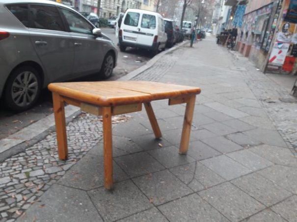 Stół z powyłamywanymi nogami