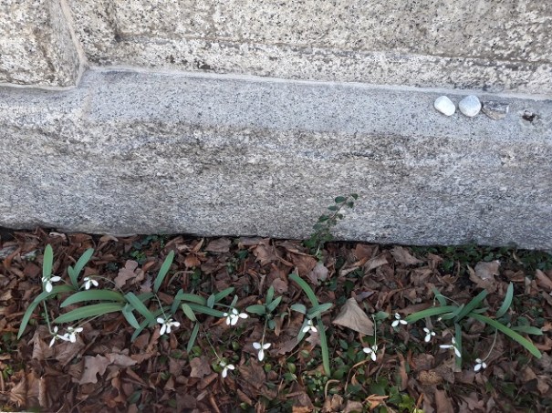 Jest ciepły dzień lutowy. To oczywiste, że cmentarz pełen jest kwitnących wiosennych kwiatów. Ale o dziwo są i grzyby.