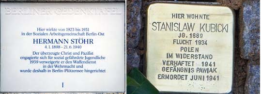 Dann denke ich mir, dass auch ich bei dem Projekt mit machen könnte, um unsere beide Protagonisten, mit denen ich mich seit Jahren beschäftige, zu erinnern: Hermann Stöhr (links unten), der erste Kriegsverweigerer des 2. WK, hingerichtet in Plötzensee und Stanisław Kubicki, polnischer Maler, Vorreiter des Pazifismus und der Deutsch-Polnischen Versöhnung, zum Tode gefoltert in Gestapo Gefängnis Pawiak in Warschau.