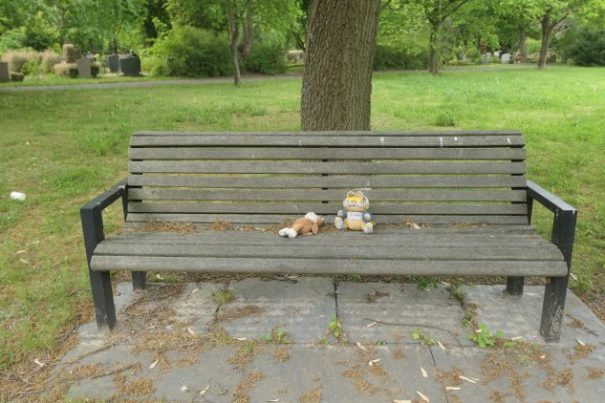 Wir sollten es aber schon geahant haben, als wir bei dem Eingang eine Leserin trafen. So ist es jetzt in Berlin. Es gibt in der Stadt 270 Friedhöfe, alte und neue, historische und moderne, aber allesamt schön und an schönen Tagen zum Relaxen, Lesen, Träumen einladend.