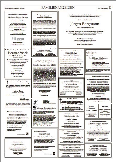 Beide Verstorbene waren Freunde, beide – wichtige, bescheidene Menschen, so eine heutzutage seltene Eigenschaftzusammensetzung. Beide, um die Wörter von Ernst Wiechert zu benutzen, legten ihre Hände auf der Oberfläche der Wirklichkeit, beide haben tiefen Spuren hinterlassen. Professor Kubicki war Gründer der Freien Universität Berlin, Witold Kamiński – des Polnischen Sozialrats, einer der wichtigsten Selbsthilfeorganisationen der Polen in Berlin. Beide waren gute, offene, tolerante, helle Menschen gewesen. Um die Beiden haben wir geweint und sie fehlen uns, werden immer fehlen. (20191027_tsp_Todesanzeigen für KundK).