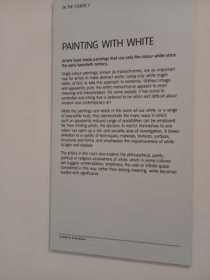 Lubię śnieg i lubię zimę. Może dlatego lubię też białe malarstwo. Gdy jesienią tego roku byłam w Tate Modern w Londynie zachwyciłam się salą poświęconą białemu malarstwu. Są też sale o innych kolorach.