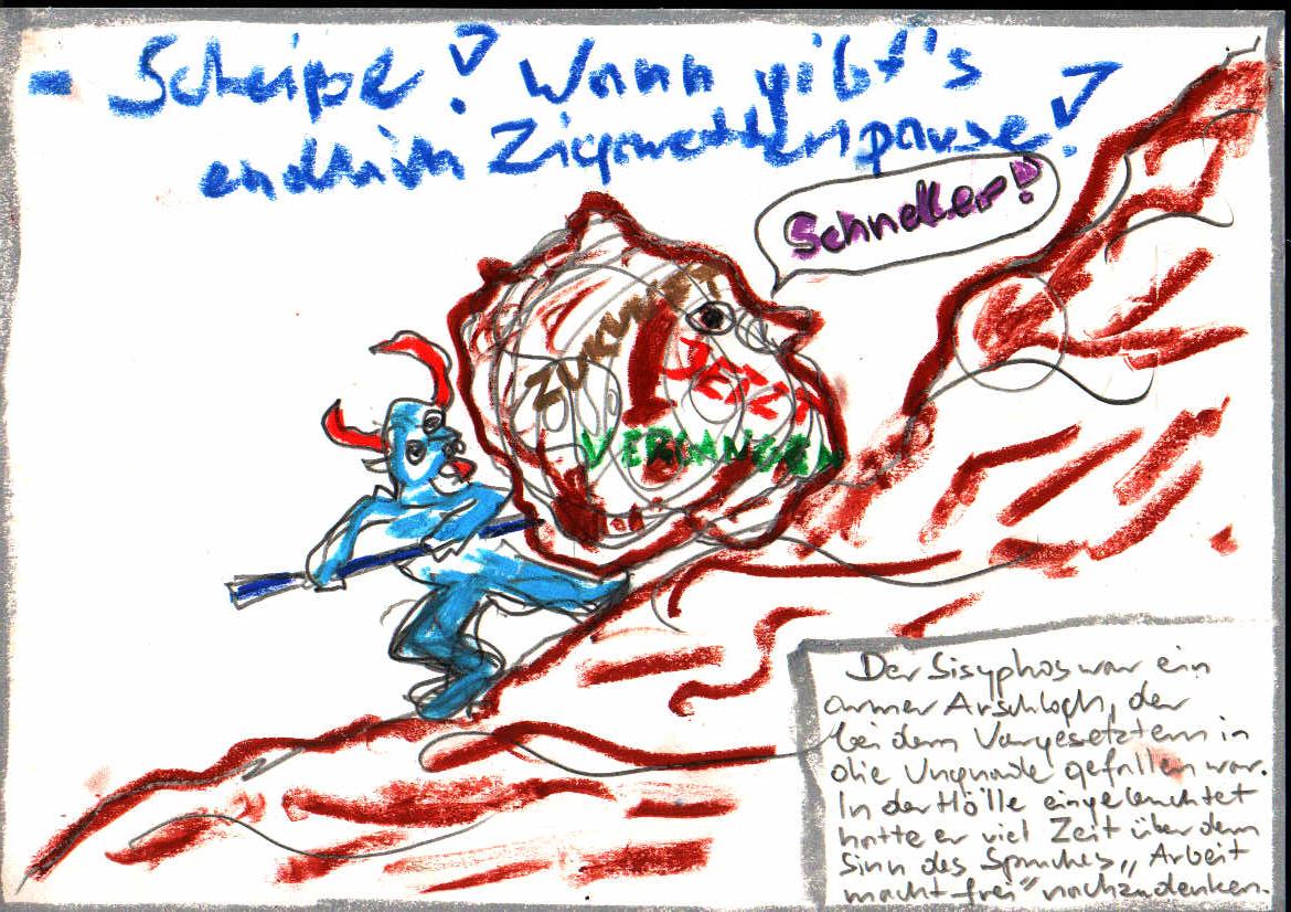 Oczywiście Syzyf to jest archetyp człowieka, którego praca nie przynosi żadnych efektów. Ale nie tylko, Syzyf jak Don Kichot pojawia się ciągle w kulturze, ale nie w swej całej złożoności, tylko obaj sprowadzeni do jednej cechy – Syzyf do syzyfowych prac (które jednak są raczej ciężkie i wymagają czasu niż beznadziejne i bez końca), a Don Kichot do donkichoterii.