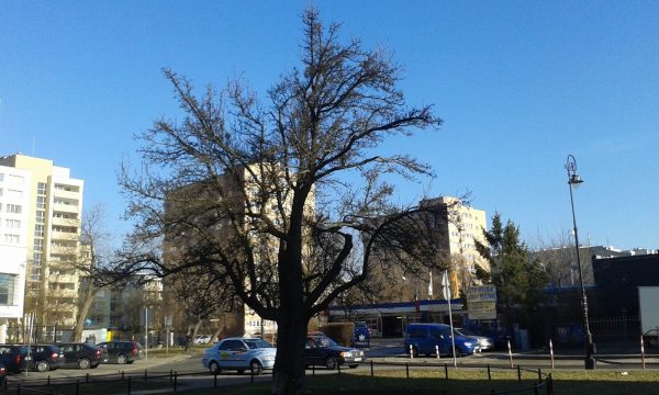 I na marginesie ciekawostka – grusza posadzona we wsi Mokotów przez dziadka Maryli, Walentego Ciechomskiego w roku 1870; dziś na ruchliwym skrzyżowaniu ulic Bałuckiego i Racławickiej. / Dieser Birnbaum im Zentrum Warschaus wurde von Marias Großvater 1870 gepflanzt.