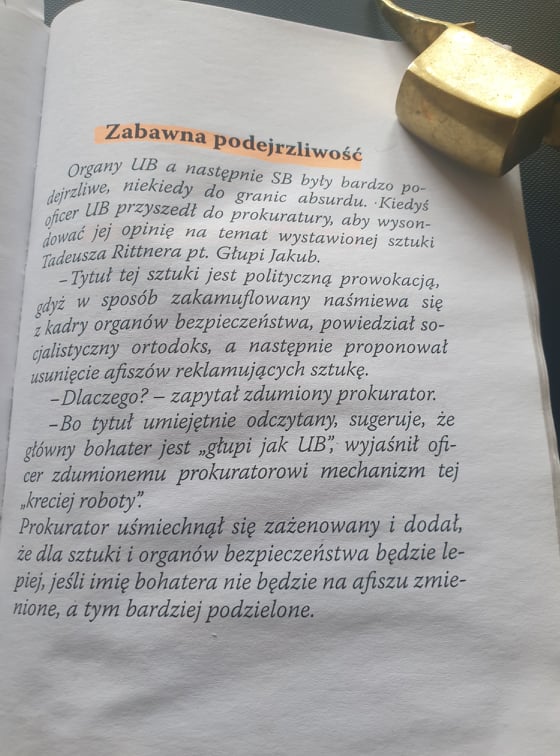 Niestety brak miejsca, żeby przytoczyć wszystkie dykteryjki z tej kapitalnej książki. W rozmowie telefonicznej z panem Zygmuntem Ogórkiem dowiedziałem się, że ma on kilkadziesiąt nowych anegdot i nadzieję, że nadejdą kiedyś czasy, kiedy będzie je można opublikować.