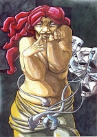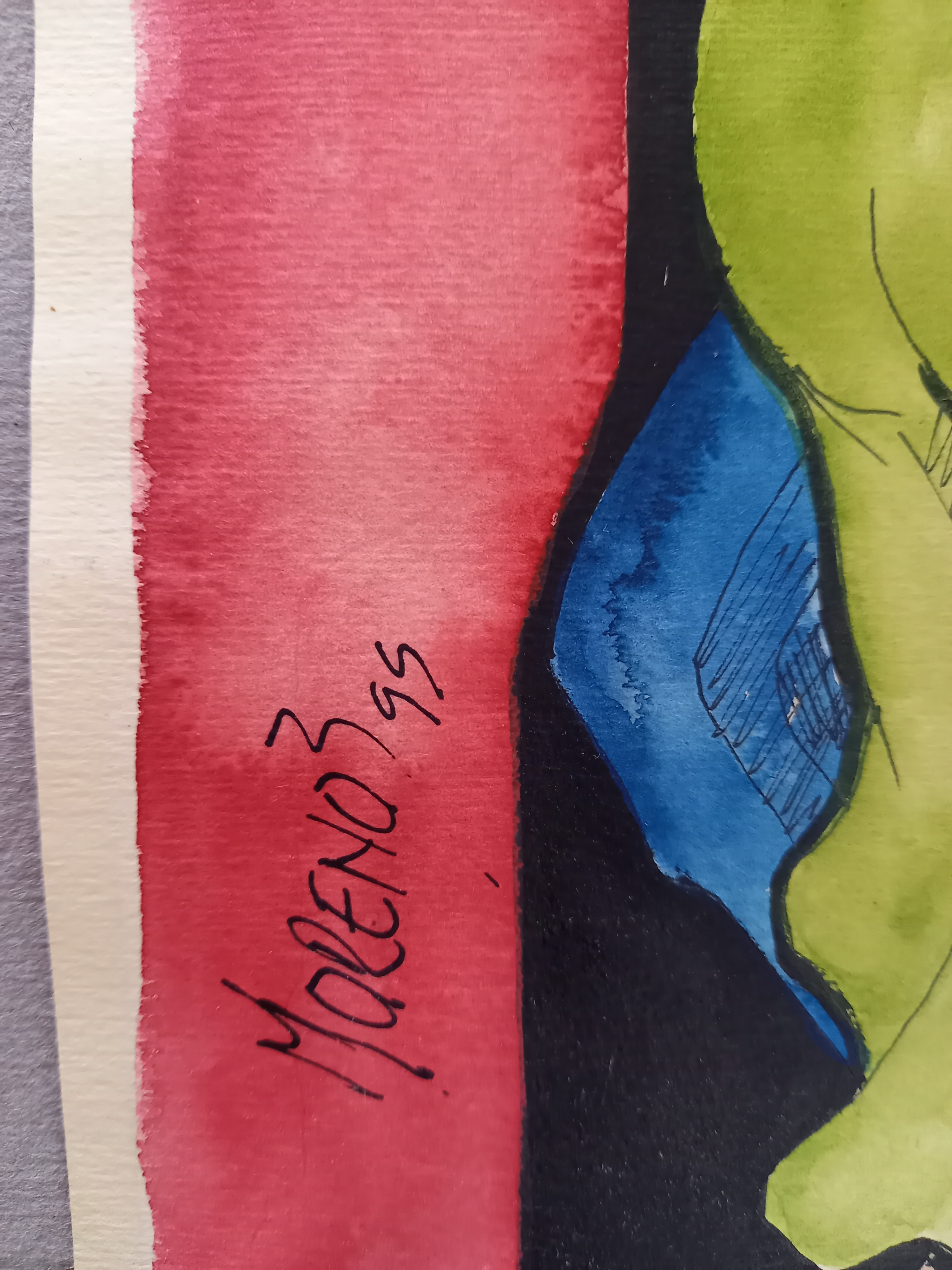 Czego to człowiek nie znajdzie w Berlinie na ulicy. Ten rysunek piórkiem, pokolorowany farbami wodnymi, który znalazłam kiedyś pod płotem, nosi tytuł Romancero Criollo (Romancero Kreolskie) i został wykonany przez Argentyńczyka, Ricarda Moreno Blanco w roku 1995, a ja go znalazłam w roku 2004, albo 2005, czyli gdy dzieło było jeszcze całkiem młode. Dziś ma już swoje lata i nawet mi dość smutno, że przetrzymałam je od wtedy za szafą.