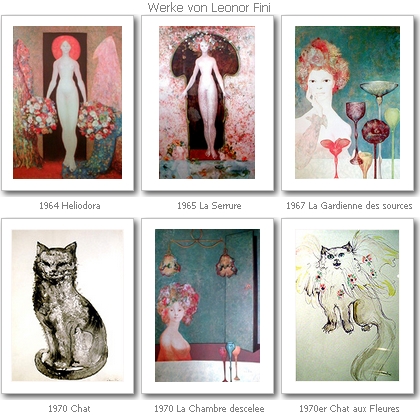 U góry obrazy Leonor Fini, męski portret to Stanislao Lepri; poniżej obrazy Stanislao Lepri, ten po lewej to Pokój Leonor.