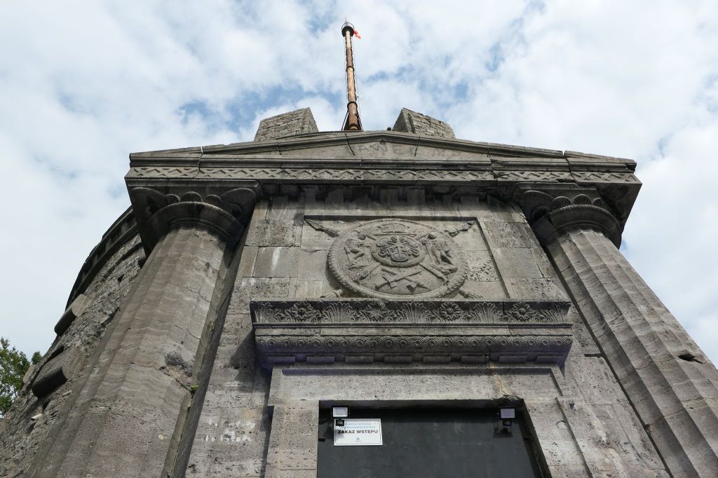 Wieża na pierwszy rzut oka jest w dość dobrym stanie, beton i wapień muszlowy mają się dobrze. Fani Pogoni dotarli też tutaj i zapisali na murach wieży nazwę swojego klubu.