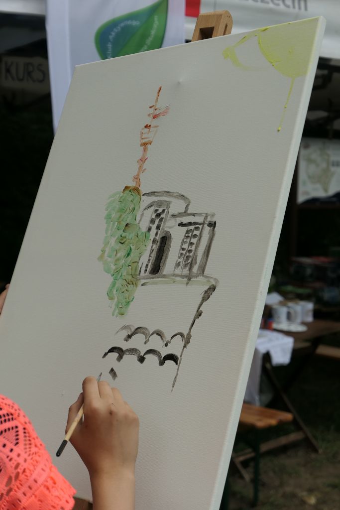 Wsiadając na Pomorzanach do szóstki, mijamy po drodze fabryczne zabudowania dawnego Szczecina, za którymi kryje się Szczecińska Wenecja, potem dworzec nad Odrą po lewej, pomnik kolejarza po prawej i Most Dworcowy, którego już nie ma, też po prawej. Wjeżdżamy na Most Długi, z lewej kościół św. Jana Ewangelisty, głębiej katedra św. Jakuba, po prawej kościół Świętej Trójcy, jedyny ewangelicki w Szczecinie. Mijamy Zamek Książąt Pomorskich, dojrzeć można tylko jego wieże. Czy widać z tramwaju tajemniczą Basztę Siedmiu Płaszczy, nie jestem pewna. Tramwaj jedzie wzdłuż Nadbrzeża Wieleckiego, pod Trasą Zamkową, której podpory stały się galerią dla artystów muralowych ze słynnym muralem „Iwaszkiewicza“ (ciągle zamalowywanym) i z wieloma innymi znanymi i nieznanymi malunkami, w tym Lumpa, cenionego szczecińskiego twórcy. Potem zaczynają się już słynne Wały i Bulwar Chrobrego (Hakenterrasse, nazwane na cześć burmistrza Hakena), zaprojektowane według koncepcji Wilhelma Meyera-Schwartau, a przy nich Muzeum Narodowe i Akademia Morska. Z przystanku Dworzec Morski można zejść do kapitanatu i, jak się ma szczęście, promem dotrzeć na Wyspę Grodzką. Prom przeznaczony jest dla działkowiczów z wyspy, ale działkowiczów można odwiedzać. Plaży na Wyspie Grodzkiej nie lubię, bo zajęła dużą część działek. Tramwaj jedzie dalej, oddala się nieco od Odry, by znów przy Stoczni Szczecińskiej się do niej przybliżyć. A potem zaczyna się już inny Szczecin, mniej turystyczno-pokazowy, ze starymi budynkami fabrycznymi, na murach których z trudnością, ale można jeszcze odczytać niemieckie słowa, Pałac Tilebeinów już nie istnieje, być może niedługo będzie można znowu pospacerować po parku przy pałacu z zachowanym starodrzewiem i odwiedzić miejsce dawnego rodzinnego mauzoleum. Na murach coraz częściej pojawiają się napisy kibiców piłkarskiego klubu Pogoni Szczecin, który to szczególnie na północy miasta ma swoich wielbicieli.