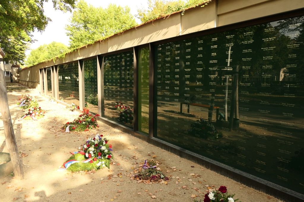 Przy wejściu na cmentarz po lewej stronie od niedawna znajduje się też inne miejsce pamięci, pamięci o ofiarach nazistowskiej przemocy. Ponad 1360 nazwisk, w tym 430 Polaków. Każde zapisane innym charakterem pisma przez współcześnie żyjących, później przeniesione na szklaną zieloną ścianę, ustawioną na cmentarzu w kształcie litery L. Autorami miejsca pamięci są artystka Katharina Struber oraz architekt Klaus Gruber.