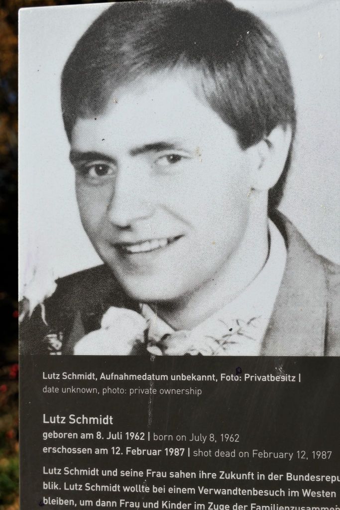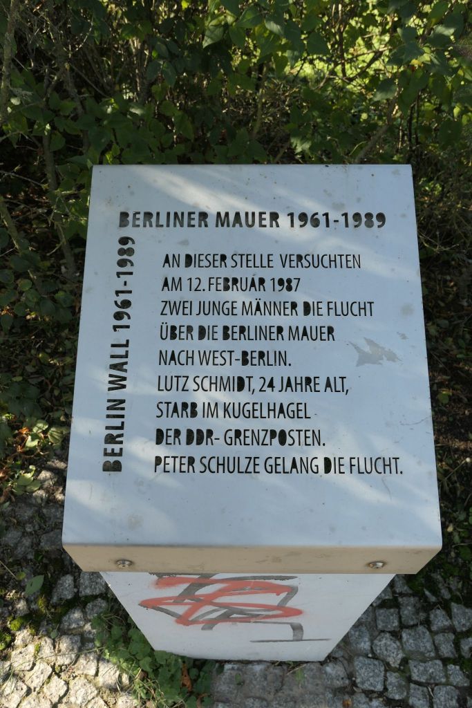Niedaleko ulicy Lutza Schmidta jest cmentarz (Friedhof Altglienicke), jeden z tych murem podzielonych, którego część za kaplicą po roku 1961, czyli po podziale miasta, zlikwidowano i zamieniono na pas graniczny. Prawdopodobnie stamtąd wezwano straż graniczną, gdy Lutz z kolegą uciekali przez mur. Kaplicę i otaczające ją kolumnady niedawno odnowiono, w dużej części zrekonstruowano. Za kaplicą, na dawnym pasie granicznym ułożone są w półkolach głazy narzutowe, upamiętniające żołnierzy z parafii Niederschöneweide, poległych podczas I wojny światowej. Na obelisku widnieją 144 nazwiska.