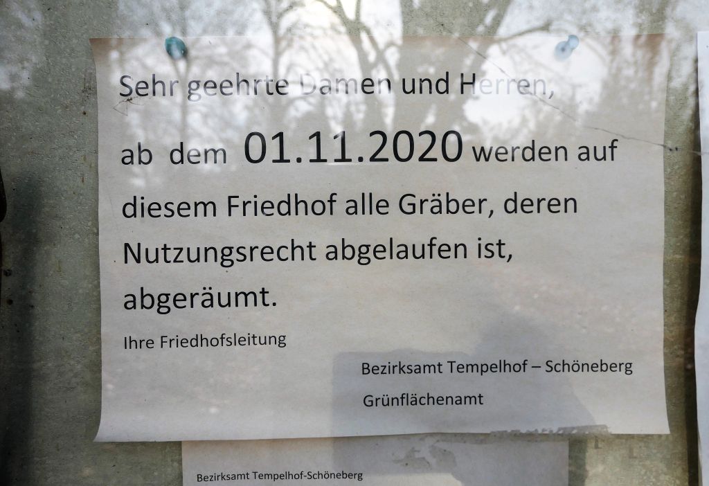 Na berlińskich cmentarzach zaczyna brakować grobów, przeczytałam w berlińskiej gazecie Morgenpost. Brakuje grobów, a nie odwrotnie. Kremacja stała się rozpowszechnioną formą pochówku. Minęły już czasy, kiedy berlińczycy chowani byli głównie w trumnach. Nekropolie się kurczą, cmentarze znikają z mapy miasta. Nie staje się to z dnia na dzień, proces trwa latami. Zgodnie z berlińską ustawą tereny cmentarne mogą być wykorzystywane w inny sposób po upływie okresów spoczynku i czci (pietyzmu) – co najmniej 30 lat od ostatniego pochówku. Zaleca się jednak, żeby teren po-cmentarny przeznaczyć na park, biotop lub teren zielony w szerokim rozumieniu słowa. Istnieje jednak prawo nadrzędnego interesu publicznego, które pozwala na zagospodarowanie byłych cmentarzy inaczej. Znikających cmentarzy jest podobno w Berlinie 39. Nie są parkiem, nie są już cmentarzem, są czymś pomiędzy, gdzie niegdzie pojedyncza mogiła, albo ślad po niej, szerokie aleje, stare drzewa. Żaden z tych znikających cmentarzy nie zrobił na mnie takiego wrażenia, jak cmentarz Parkfriedhof Tempelhof.