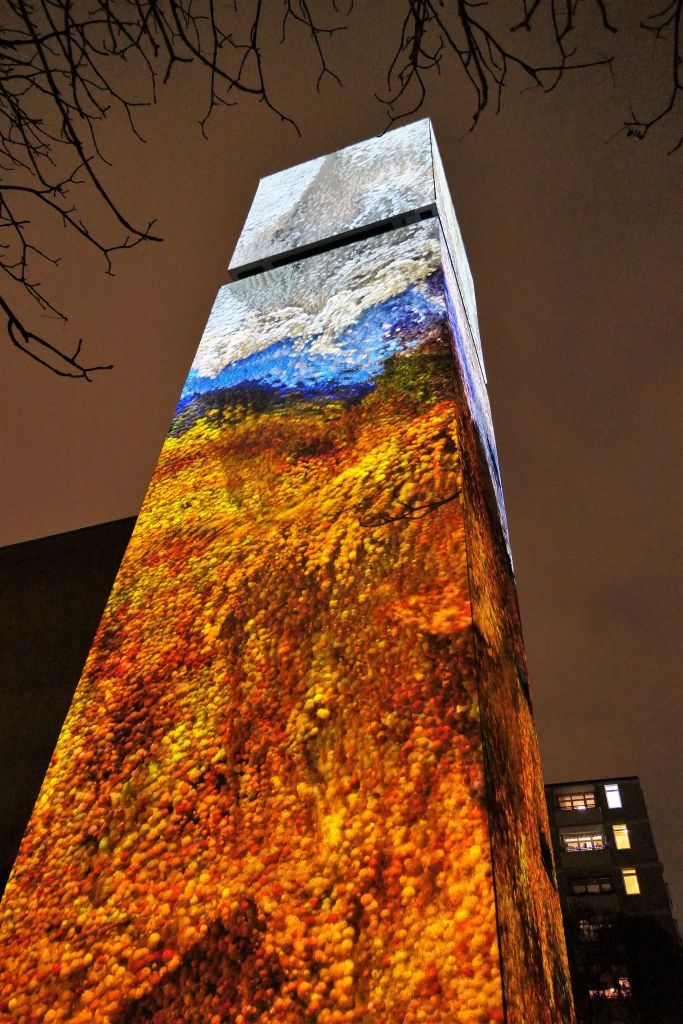 Ale wracając do wystawy w byłym kościele, a teraz galerii, siedzałyśmy przed ołtarzem sztuki, wielbiąc pana artystę Refika Anadola, a wieża kościelna zamiast dzwonów rozbrzmiewała wszystkimi kolorami tęczy.