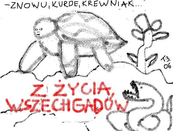 – Jak myślicie –rzuciła pytanie Lucy – czy ten żółw chciałby być wielbiony w skrzyni, czy też machać ogonem w błocie?