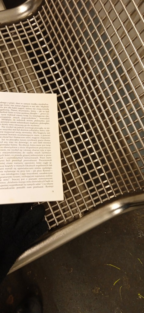 Zainteresowani mogą poszukać sobie na blogu takich moich zabaw. Jedna z nich jest TU. Tym razem jednak nie udało mi się odtworzyć, kto jest autorem tych kilku stroniczek. Znalazłam je na stacji metra. W przeciwieństwie do kartek znajdowanych na ulicy, te były czyściutkie, wręcz wyglądały tak, jakby nikt ich nigdy nie czytał, a tylko położył tu kilka kartek z książki. Podrzucił. A może nie podrzucił, lecz zrobił wizualizację bądź inscenizację. Może miała w ten sposób powstać fotografia na okładkę książki, która dopiero zostanie wydana. To by tłumaczyło, dlaczego nie ma jej jeszcze w sieci.