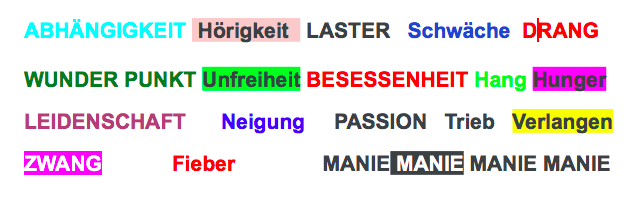 Abhängigkeit, genannt auch SUCHT bezeichnet das unabweisbare Verlangen nach einem bestimmten Erlebniszustand. Diesem Verlangen werden die Kräfte des Verstandes untergeordnet. Es können die freie Entfaltung einer Persönlichkeit und die sozialen Chancen eines Individuums beeinträchtigt werden. (Zitat Internet)