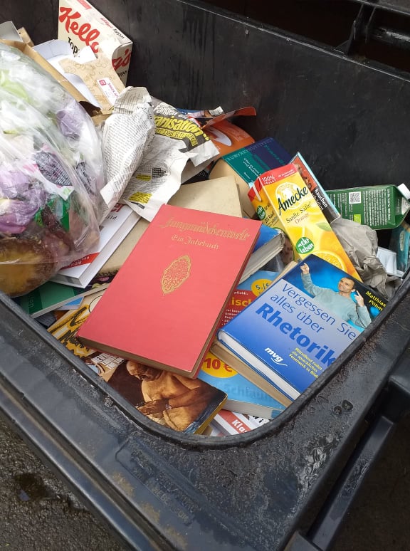 Mir läuft es jedes mal den Rücken kalt runter, wenn ich Bücher in Abfallkörben, Mülltonnen oder auf Müllhalden sehe. Dasselbe fühle ich bei weggeschmissenem Brot.
