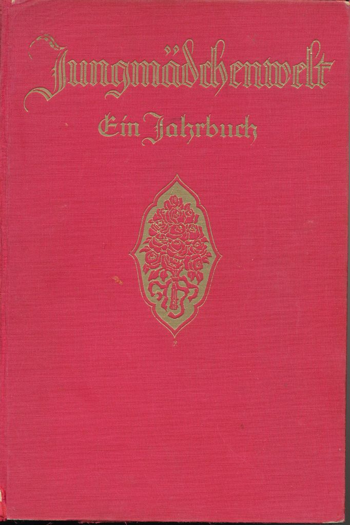 Ganzleineneinband mit goldfarbenen geprägten Lettern, sowie Prägungen in Form von einem gebundenem Rosenstrauß, „Jungmädchenwelt, ein Jahrbuch“, herausgegeben in Stuttgart bei der Union Deutsche Verlagsgesellschaft. Es gibt auch ein entsprechendes Buch für die Jungen: „Junge Welt, ein Jahrbuch für unsere Jungen“. Gott sei dank nicht im Müll gefunden, sondern bei Ebay-Kleinanzeigen. Ich denke ernsthaft daran, es zu bestellen.