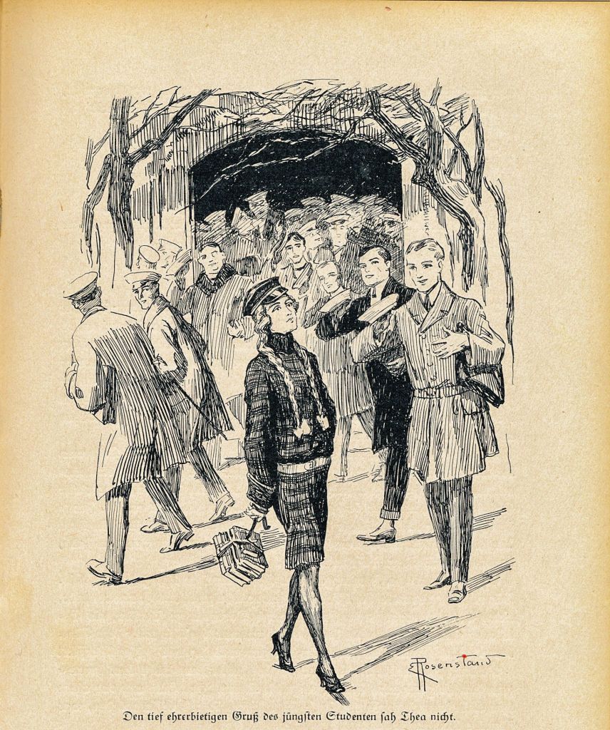 In dem Mädchenbuch findet man außer einem Rosenstrauß, alles was das Herz einer jungen Frau begehrt: „…Erzählungen ernsten und heiteren Inhalts, Plaudereien über Kunst und Wissenschaft, Länder und Völker, Beruf, Sport, Haus Hof und Garten…“