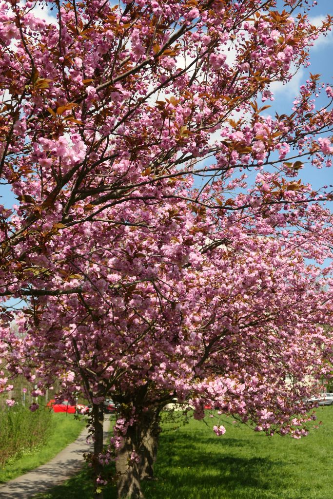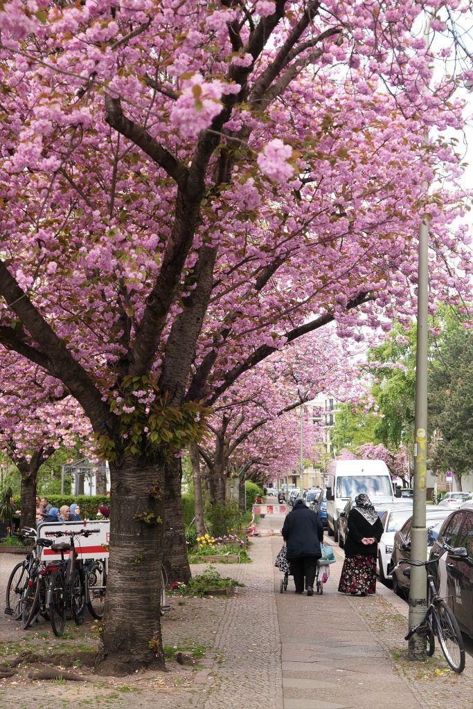 Do najbliższej alejki kwitnących wiśni mam kilkaset metrów. Franz-Cornelsen-Weg, ścieżka nazwana imieniem założyciela wydawnictwa podręczników szkolnych Cornelsen Verlag, łączy dwie większe ulice Dillenburger i Mecklenburgischer Straße, i graniczy z budynkiem wydawnictwa. Wiśnie kwitną między niekoszoną łąką i do niedawna małą kolonią ogródków działkowych. Ogródki działkowe zredukowano do kilkunastu, a w miejscu tych, których już nie ma, pną się mury do góry. Mam nadzieję, że balkony powstaną po wiśniowej stronie.