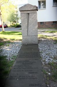 Doszłam do Alte Jacobsstraße, dalej już wiśnie nie kwitną, choć to droga muru jeszcze trochę ponad 30 lat temu dzielącego miasto. Wróciłam do początku ulicy Komendanckiej, tam gdzie się styka z ulicą Aleksandry (Alexandrinenstraße) i z Waldeckpark. Zawsze myślałam, że nazwa parku ma coś wspólnego z leśnym zakątkiem (Wald-Eck), a tu się okazało, że to „Park Waldka”. Benedikt Waldeck był niemieckim politykiem i jest uważany za jednego z czołowych lewicowych liberałów w Prusach w czasie rewolucji 1848/49 roku. Był jednym z głównych rywali politycznych Ottona von Bismarcka. Jego pomnik na dość wyeksponowanym miejscu powoli niszczeje. Przeszło 400 lat temu w tym samym miejscu znajdował się cmentarz choleryczny. Do dnia dzisiejszego zachował się dużo późniejszy już grób, zmarłego w roku 1832 Ernsta Ferdinanda Ayrera.