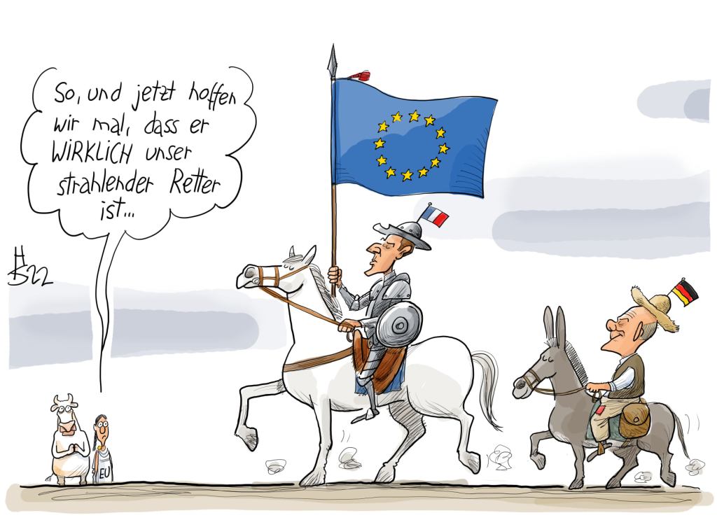 Trudno wyrokować. Na pewno po odejściu Angeli Merkel Emmanuel Macron wybija się na przywódcę Europy, podczas gdy niemieckiemu kanclerzowi przypada zaledwie rola giermka-brzuchacza. O dalszych analogiach między dzisiejszą sytuacją Europy a życiorysem Rycerza o Smętnym Obliczu pisze Arek Łuba na swoim blogu o komiksach: TU. Ciekawe wydaje się oczywiście, że jak po dwóch miesiącach wojny biedny zapatrzony we własny brzuch giermek wreszcie podniósł oczy, ujrzał mroczne obrazy wojny i postanowił sam chwycić za miecz, natychmiast zleciały się zewsząd niemieckie intelektualne dziewczątka i chłopięta, przerażone do głębin jestestwa myślą o tym, że będzie brzydko, be i prosząc Sanczę Brzuchacza by natychmiast zrezygnował ze wspierania walki i powrócił do roli przygłupa. List intelektualistów niemieckich TU (jest nawet, niestety moja ulubiona pisarka, Juli Zeh). Najstraszniejsze w tym liście (nazwijmy go) pierwszym była teza, że jeżeli naród ukraiński będzie nadal cierpiał, to będzie to jego własna wina, bo broni się przed agresorem! To zdanie jest hańbą europejskiej myśli pacyfistycznej, a ludzie którzy uznali, że ofiara jest winna tego, że cierpi, są po prostu ch… I niech już tam sobie idą.