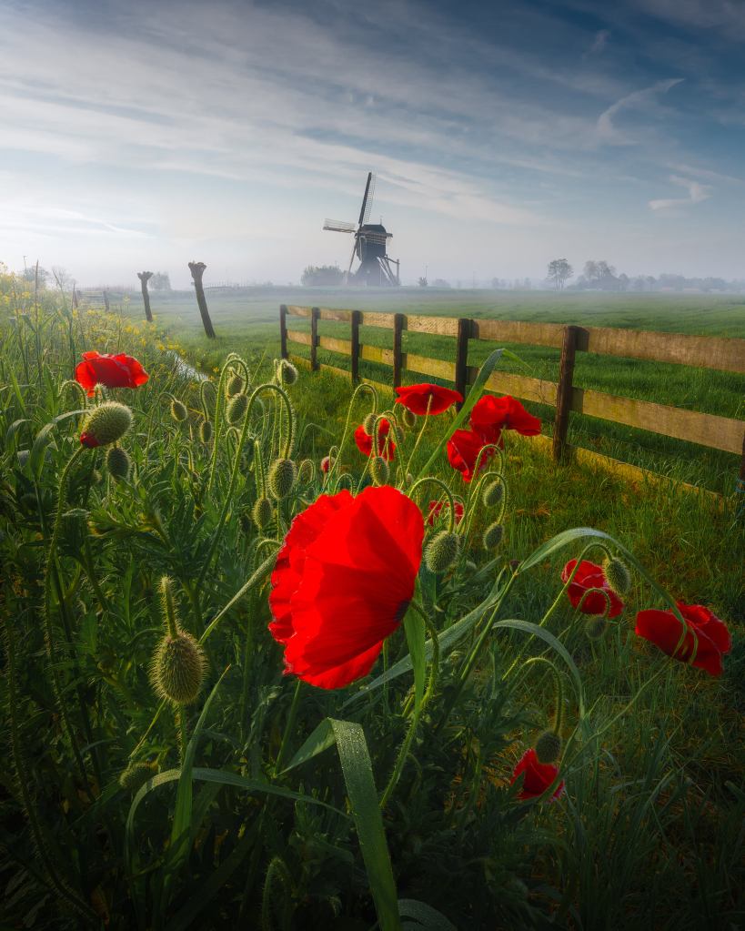 I have photographed many windmills over the years, but never one with poppies. Last week, after driving home I put my navigation ‘avoid motorways’. It’s a way for me to discover new places on the countryside, and this windmill was waiting for me. Just a few poppies were enough to make this photo.